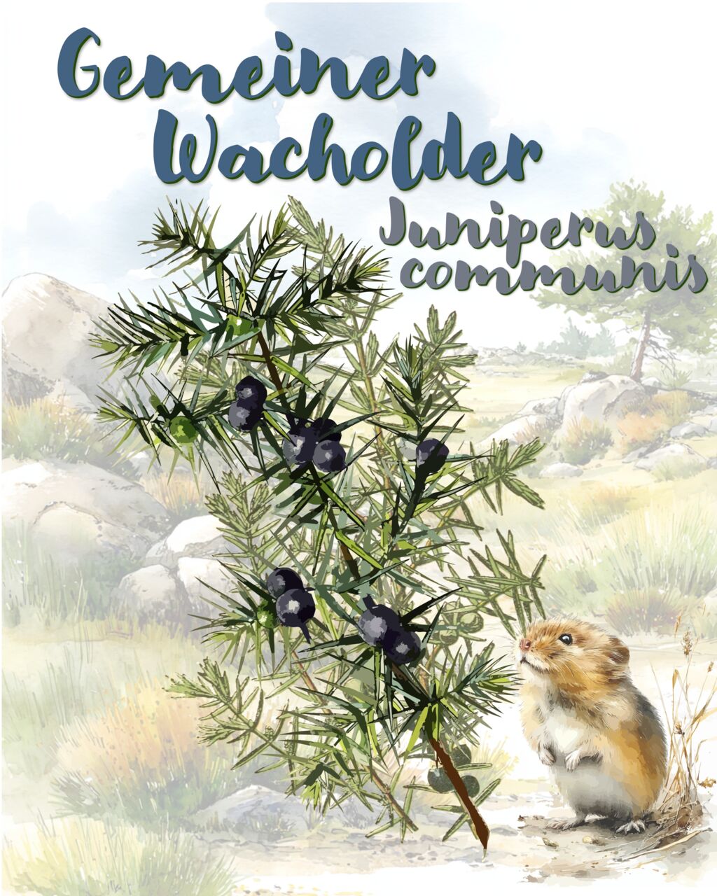 Doch der Gemeine Wacholder ist weit mehr als ein Symbolbaum – auch ökologisch spielt er eine wichtige Rolle. In seinem dichten Geäst nisten Vögel gerne. Zahlreiche Arten fressen die „Beeren“, darunter auch die Wacholderdrossel. Er ist Futterpflanze für Falterraupen von diversen Spinnern und Spannern. Auch einige Käfer sind auf die Pflanze spezialisiert. Aus wärmeren Gefilden breitet sich etwa der wunderschöne Wacholderprachtkäfer bei uns aus. Für sonnige Stein- oder Heidegärten, aber auch als säulenförmiger Solitär macht sich die „Zypresse des Nordens“ also gut.