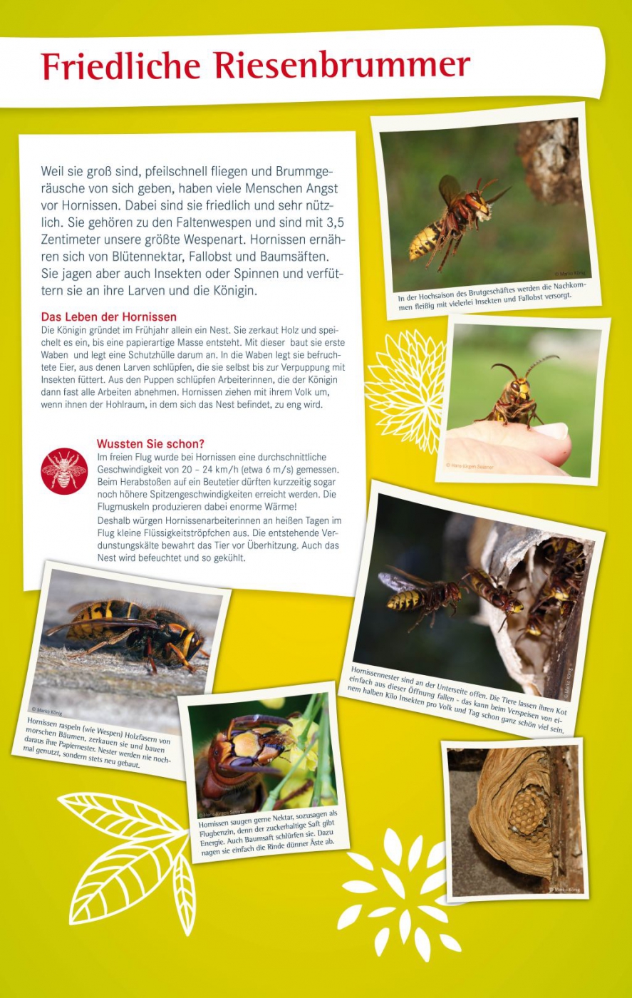 Als ersten Überblick ist der aktuelle Folder des Minsiteriums für Ländliche Entwicklung, Umwelt und Landwirtschaft des Landes Brandburg zu nennen. Hier finden sich nützliche Informationen zur Lebensweise und -zyklus sowie zum Schutz von Wespen.